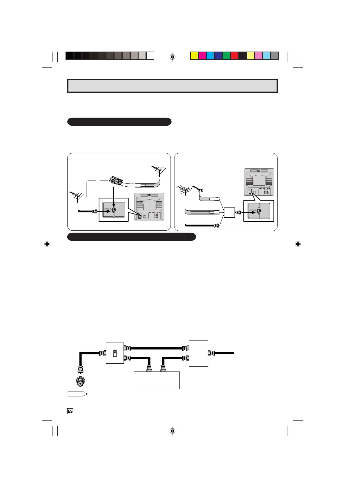 • Para conectar una antena exterior, utilice uno de los dos diagramas mostrados a continuación.