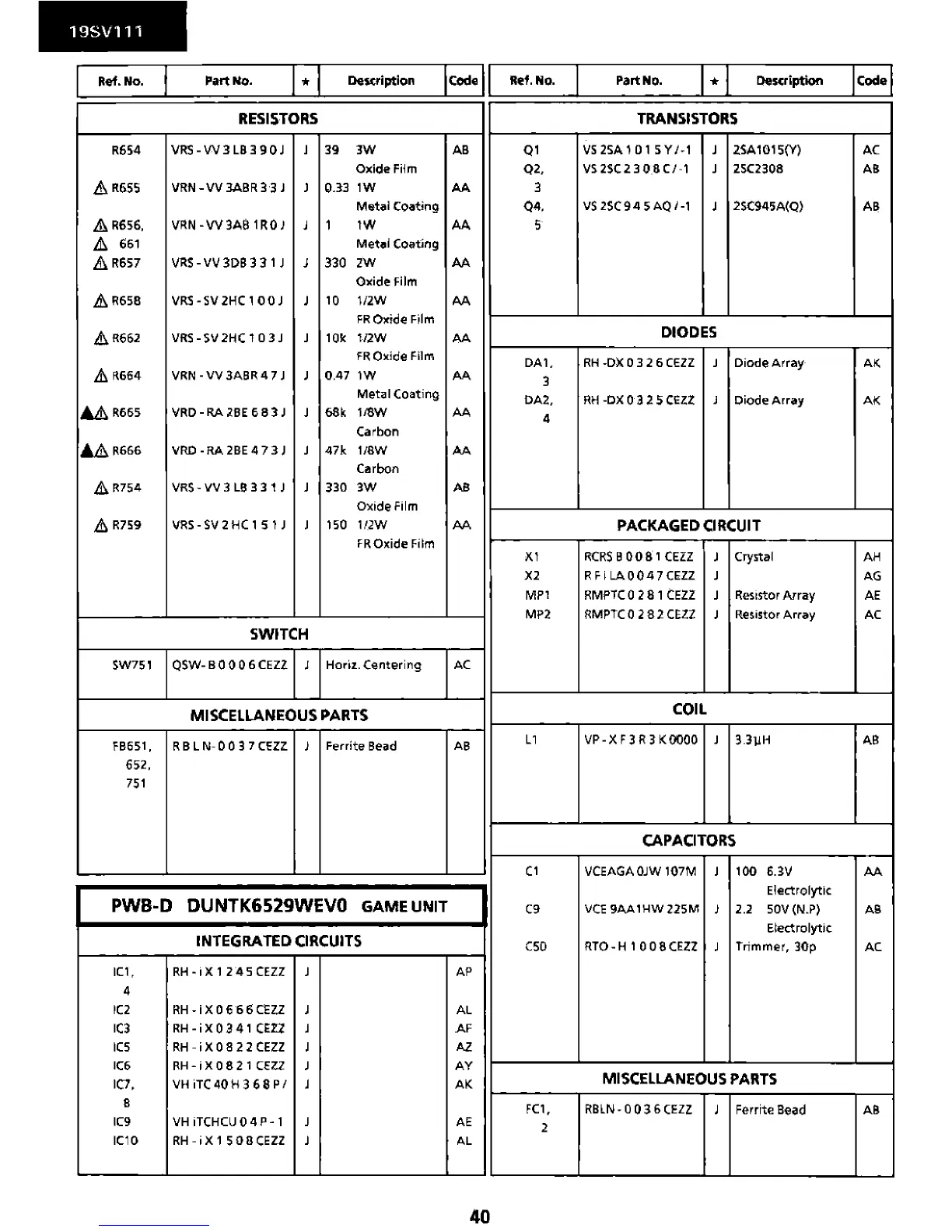 PWB-D DUNTK6529WEVO GAME UNIT