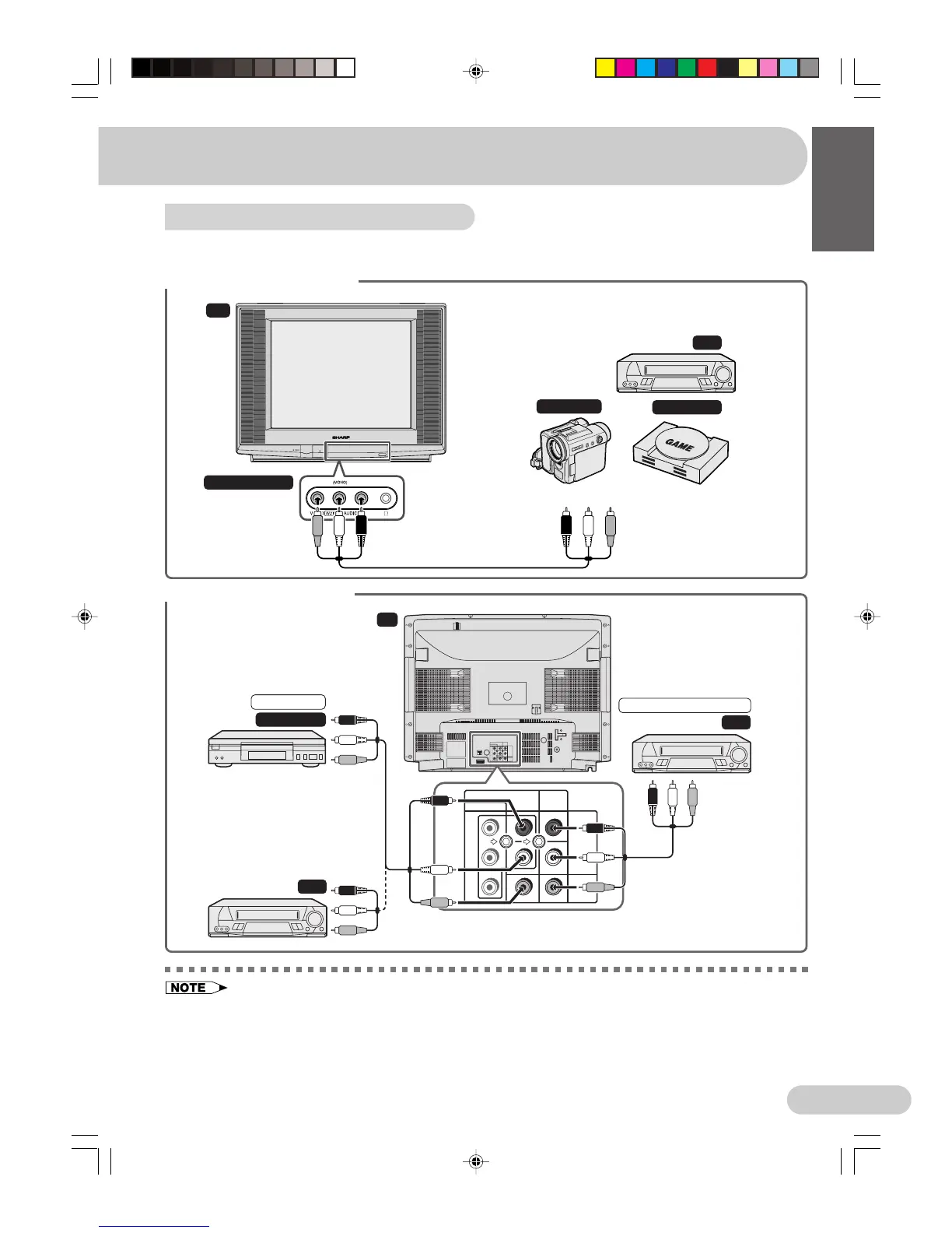 • Turn off the power on the TV set and the VCR being connected before making the above connections.