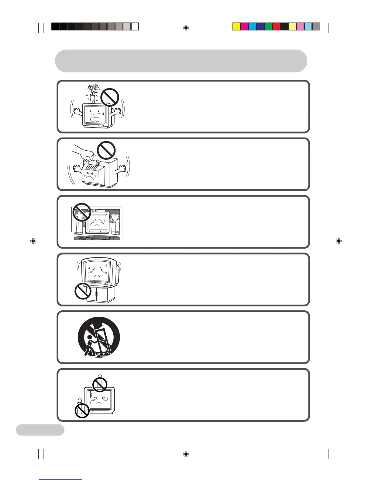 the TV set, as liquid spilt on the TV set can cause electrical