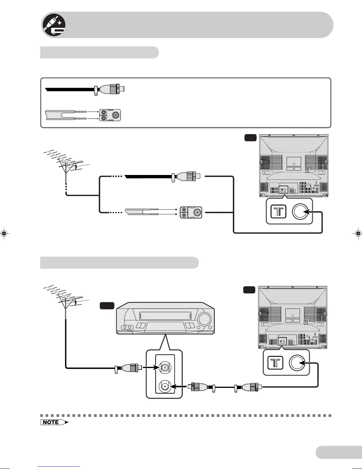 • Turn off the power on the TV set and the VCR being connected before making the above connections.