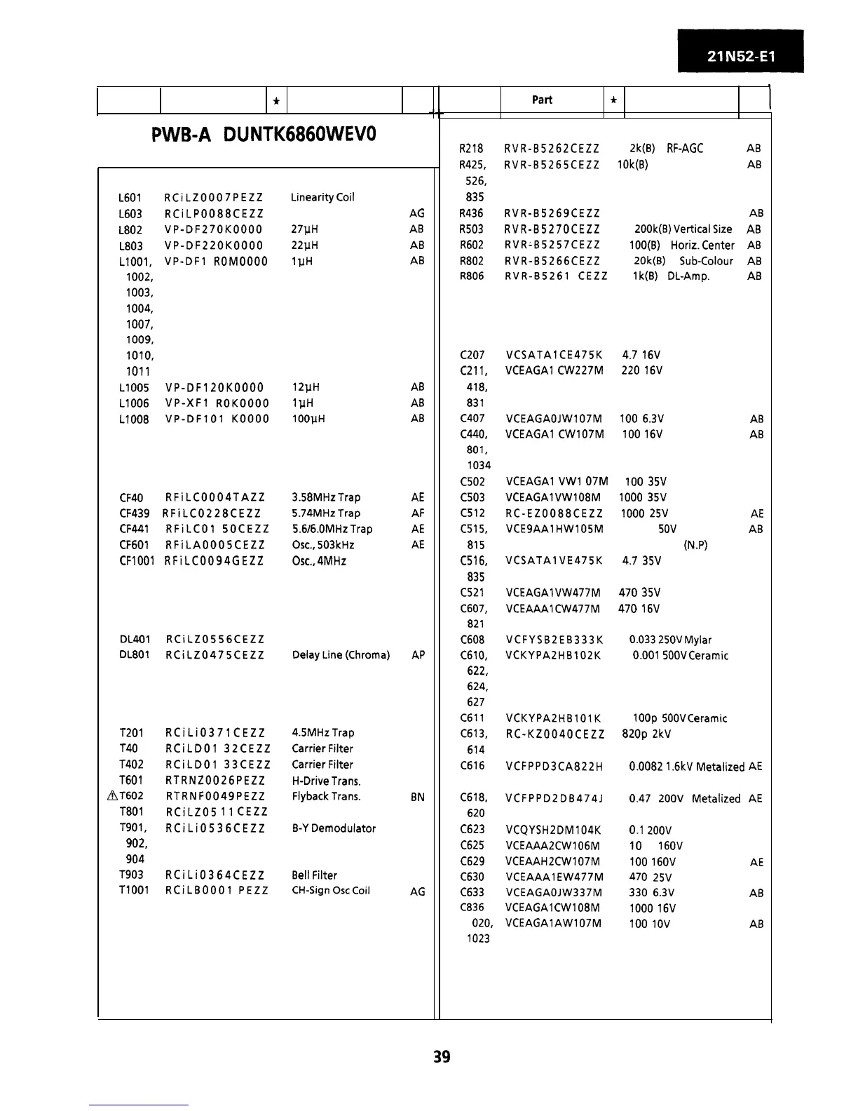 Sharp 21N52-E1 - PARTS LIST: COMPONENTS (GROUP 2); COILS, FILTERS, DELAY LINES, TRANSFORMERS; CAPACITORS AND CONTROLS LIST