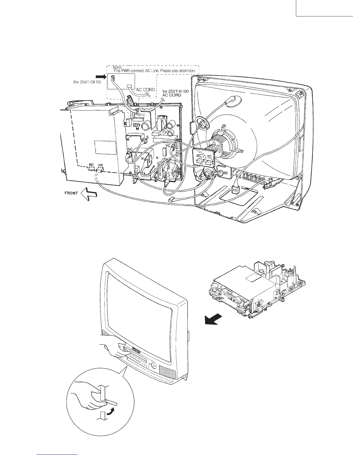 Note: Fit the VCR unit into the front cabinet with the