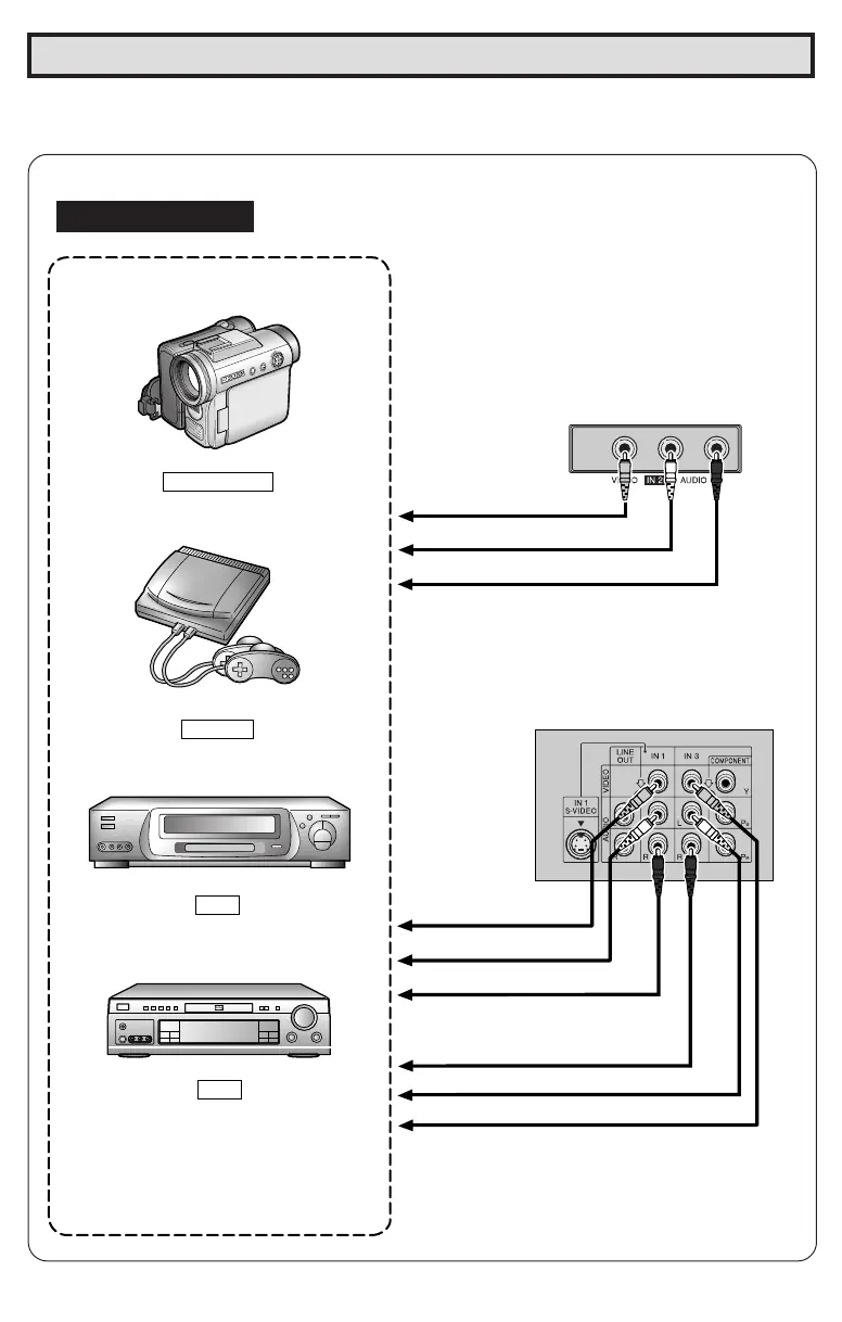 • To view video material from external video equipment, make sure to connect the equipment properly
