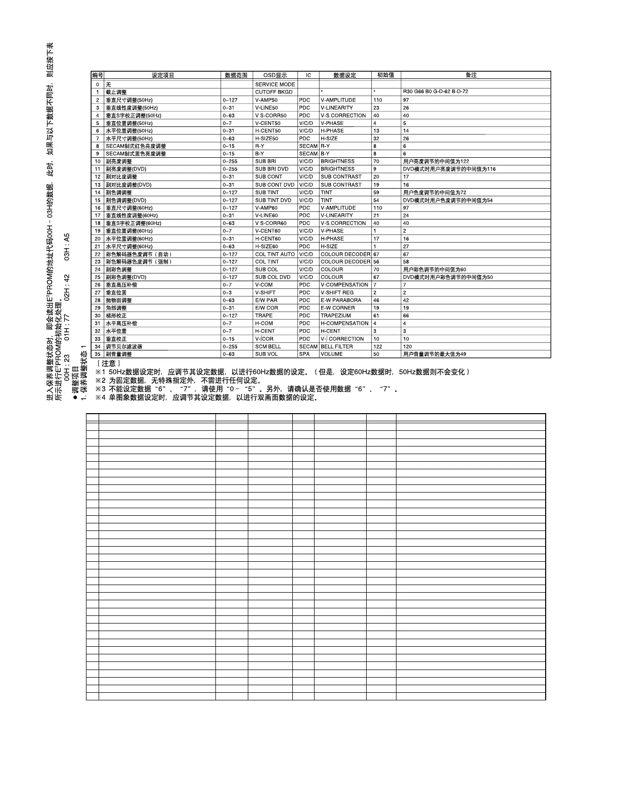 24 COLOUR sub adjustment 0~127 SUB COL V/C/D COLOUR 70 Center value to user COLOUR adjustment 60