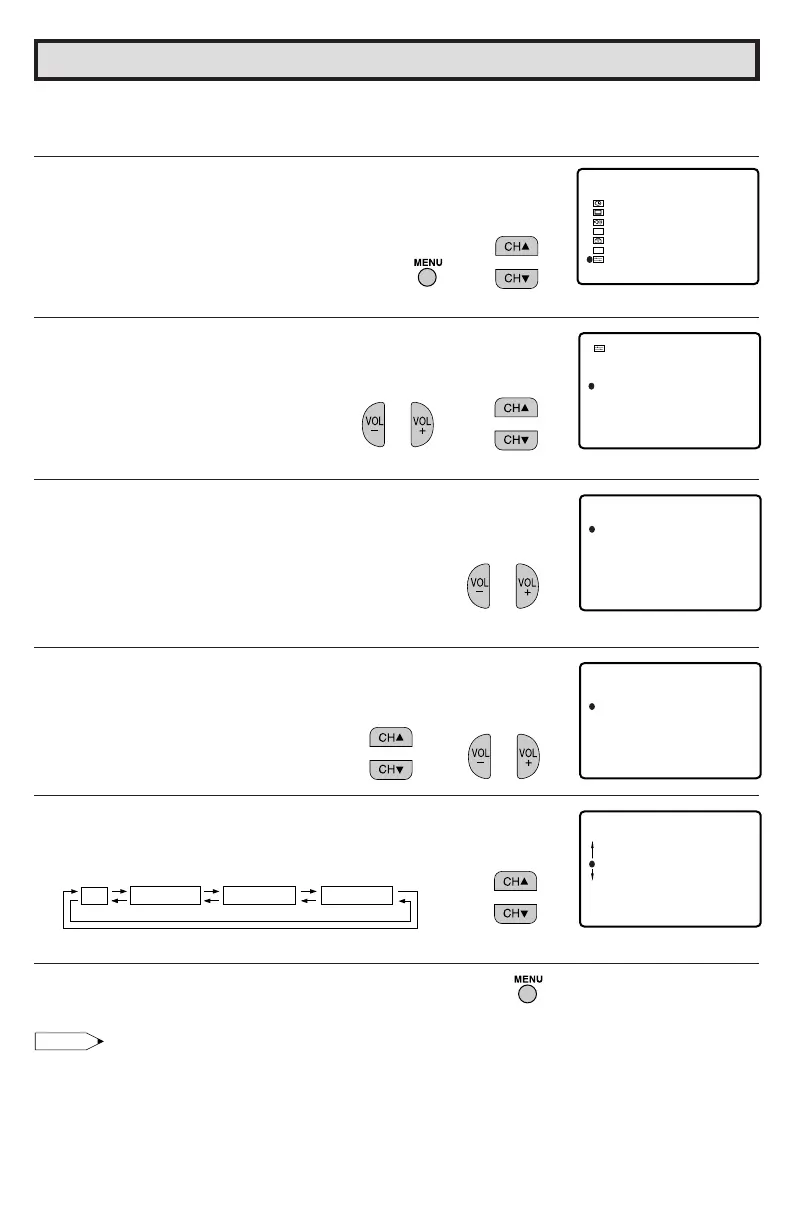 5 Press VOL k/l to access the CH SETTING screen.