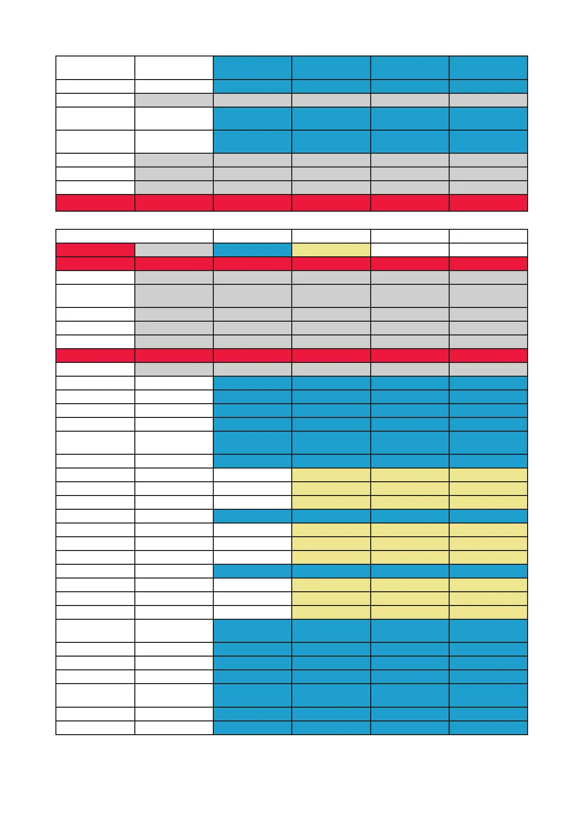 Settings see table below