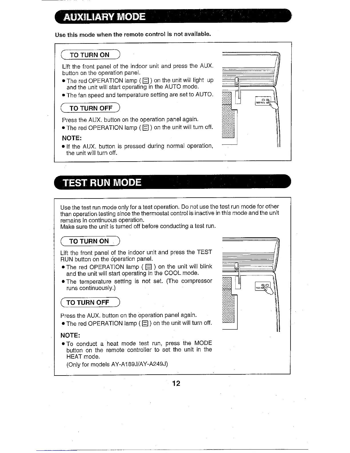 Sharp AE-A189J - Auxiliary Mode; Test Run Mode
