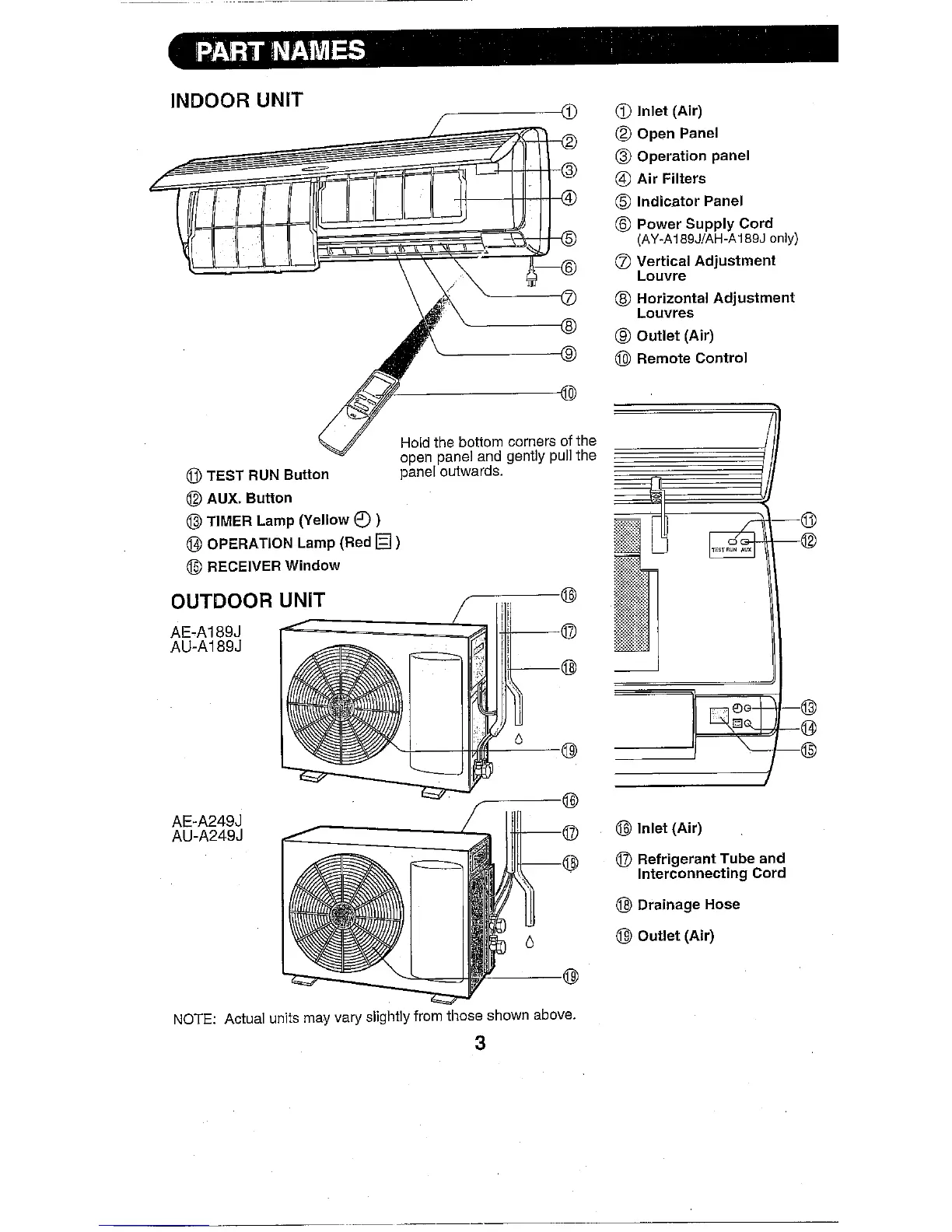 Sharp AE-A189J - Part Names; Indoor Unit; Outdoor Unit