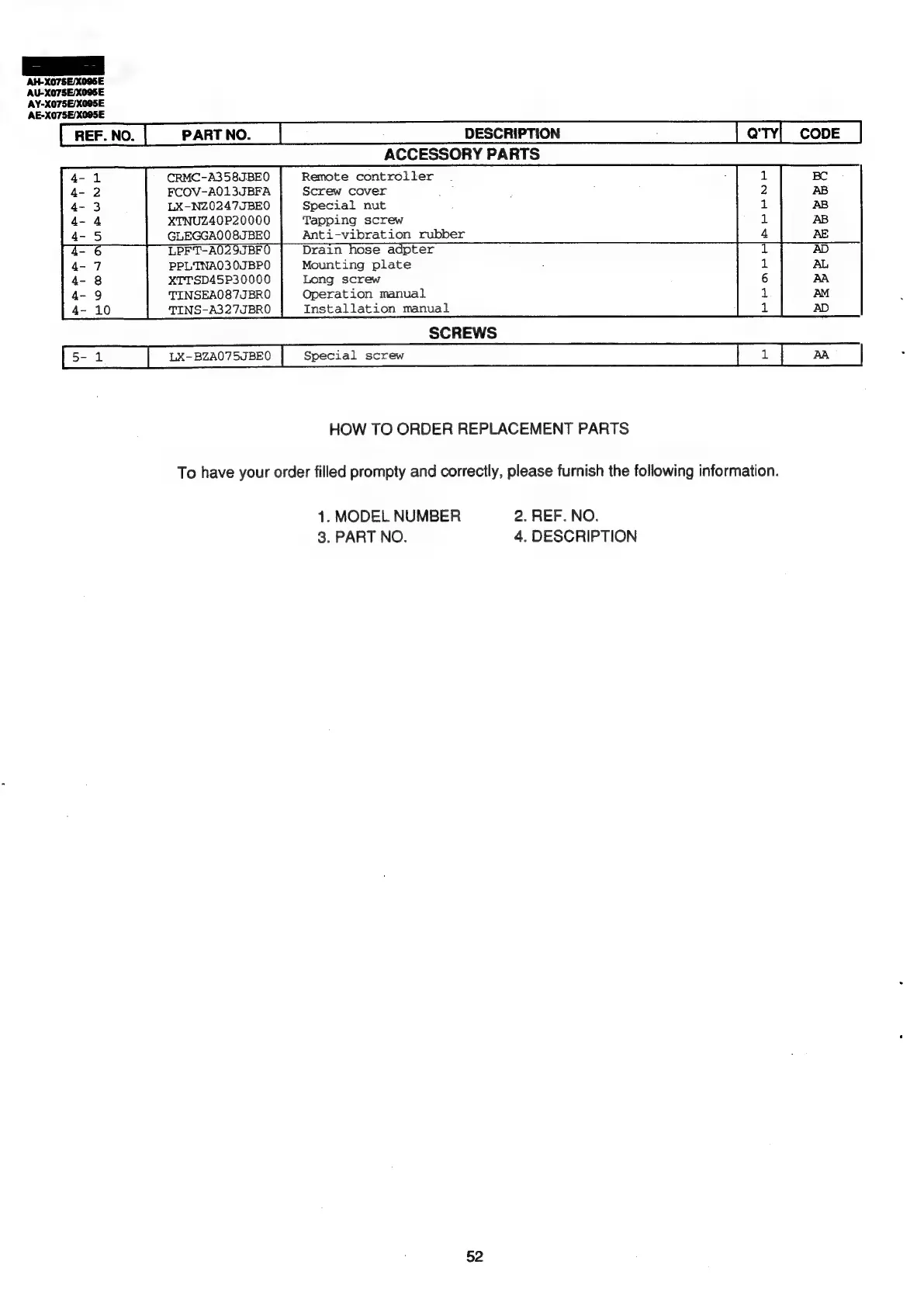 Sharp AE-X095E - Accessory Parts; How to Order Replacement Parts