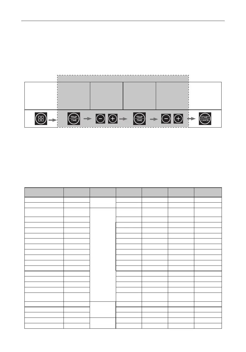 tillagningsalternativen som visas i tabellen eller använd dina egna recept.