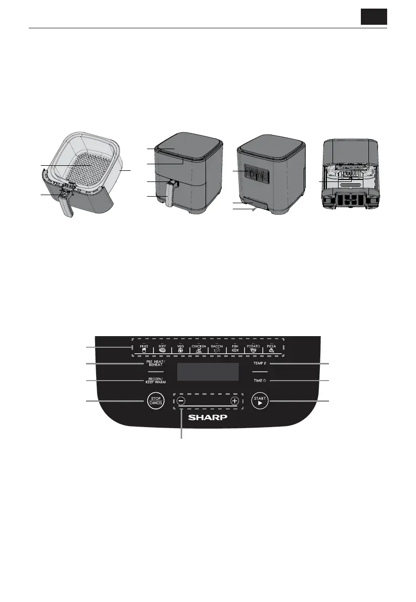 Acquisire familiarità con le funzioni della friggitrice ad aria e gli accessori che seguono prima del primo utilizzo: