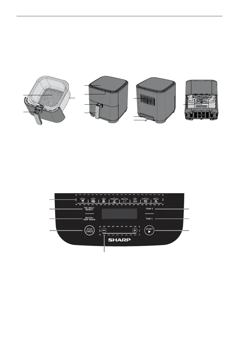Vänligen bekanta dig med följande Air Fryer-funktioner och tillbehör före första användningen:
