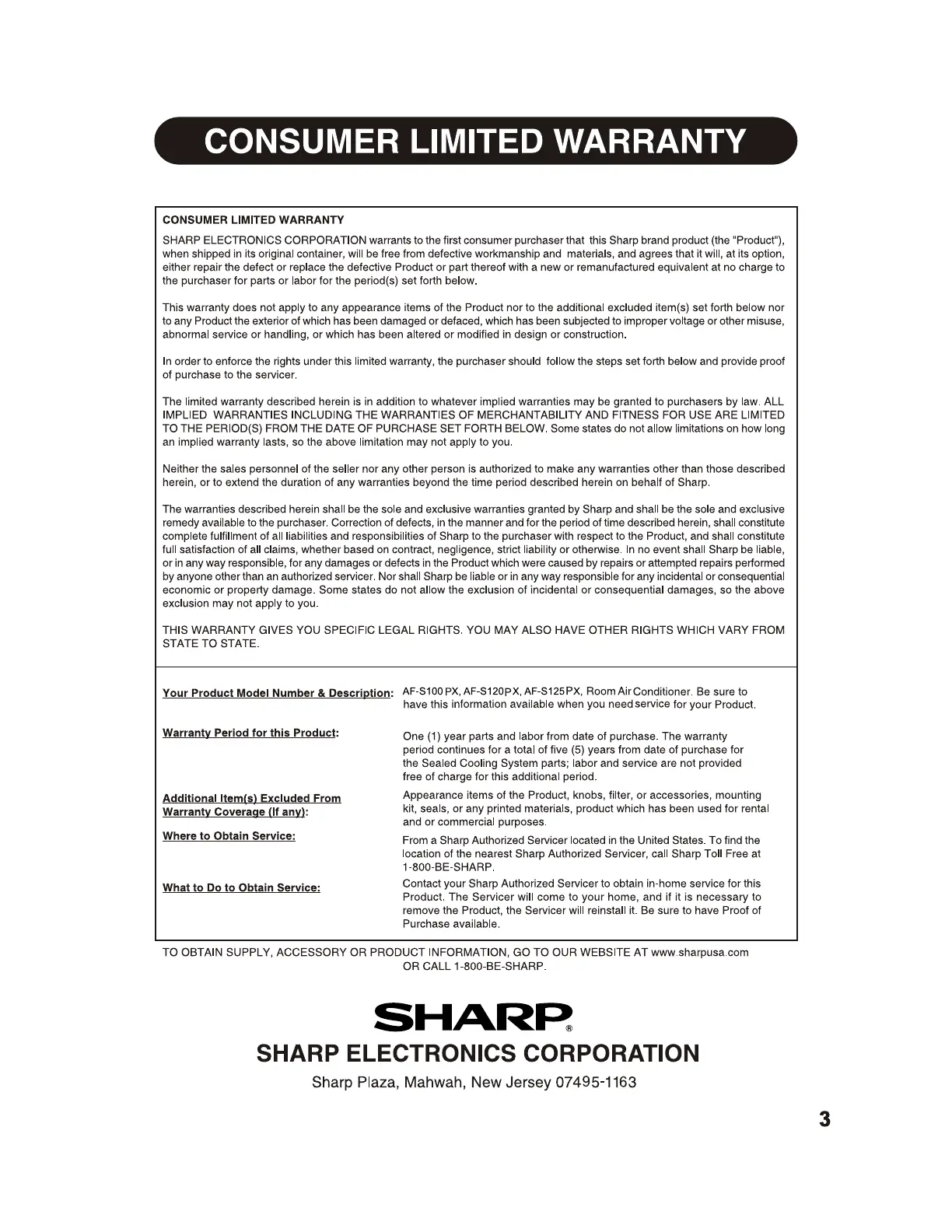 Sharp AF-S100PX - Page 3