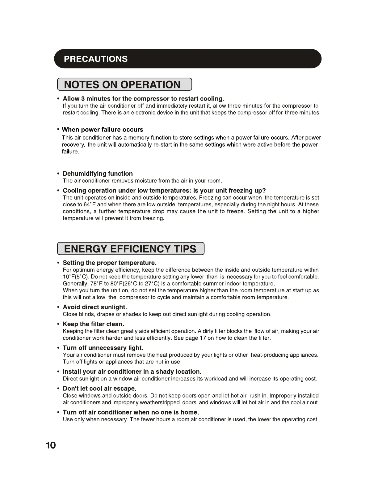 Sharp AF-S60PX - Notes on Operation; Energy Efficiency Tips