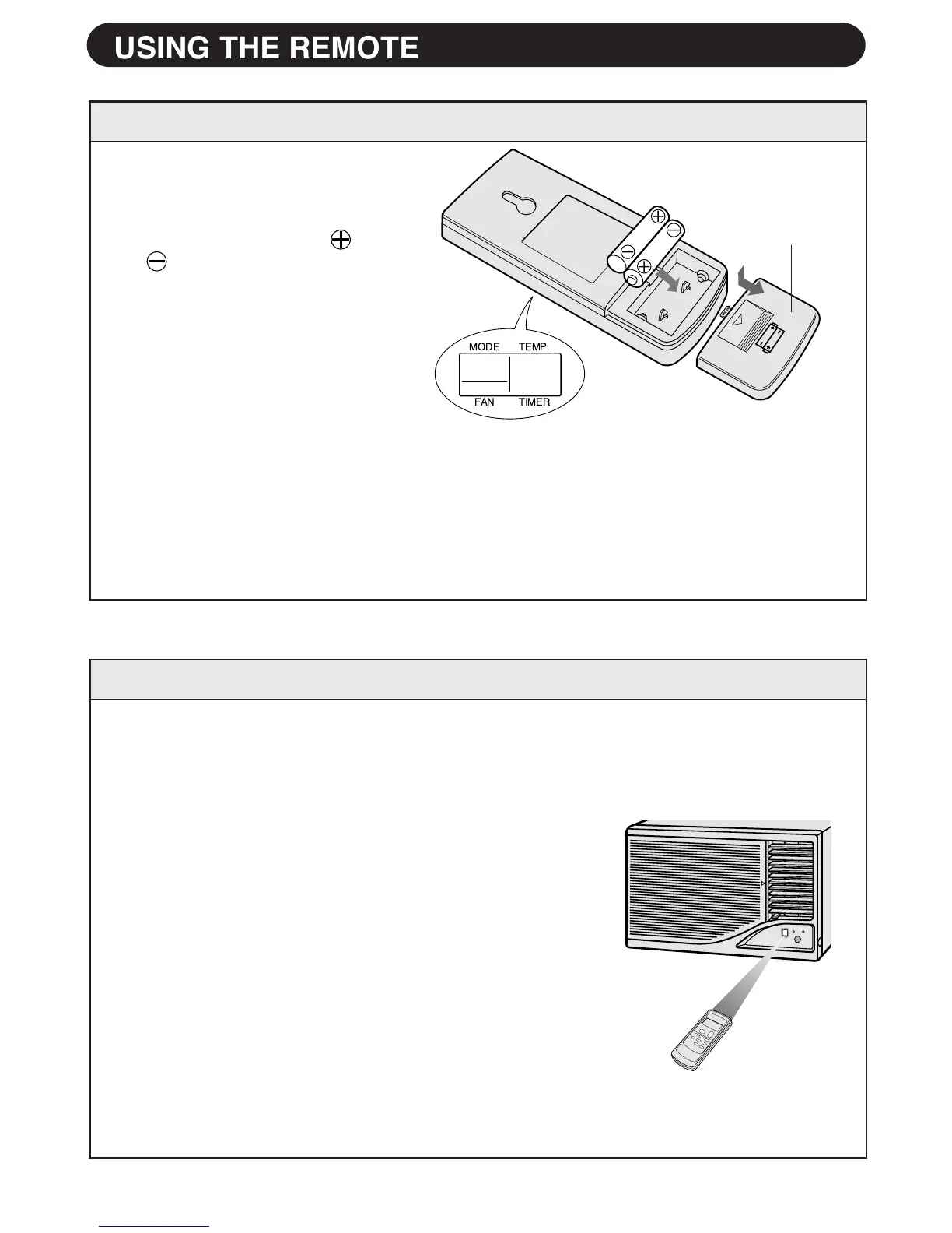 • If you will not be using the unit for a long time, remove the batteries from the remote