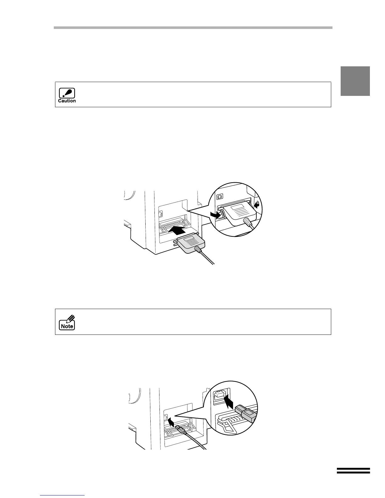 Do not connect both the USB interface cable and the parallel interface cable to this