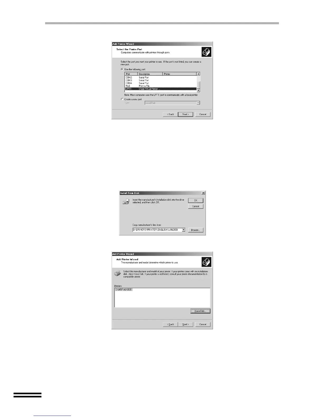 Select "SHARP AJ-6020", and then click the "Next" button.