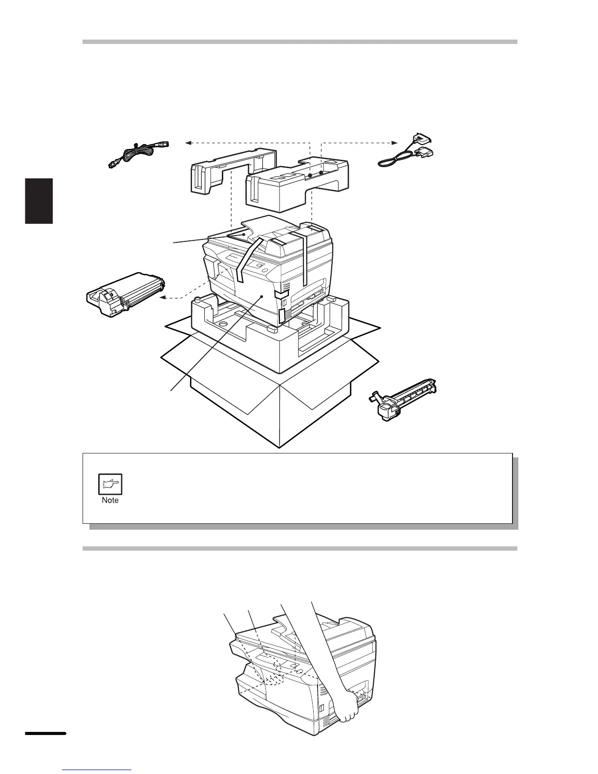 Be sure to hold the handles on both sides of the copier to unpack the copier and carry it to the