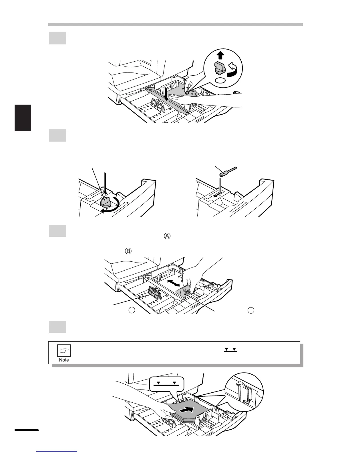 Adjust the paper guides on the paper tray to the copy paper width and length.