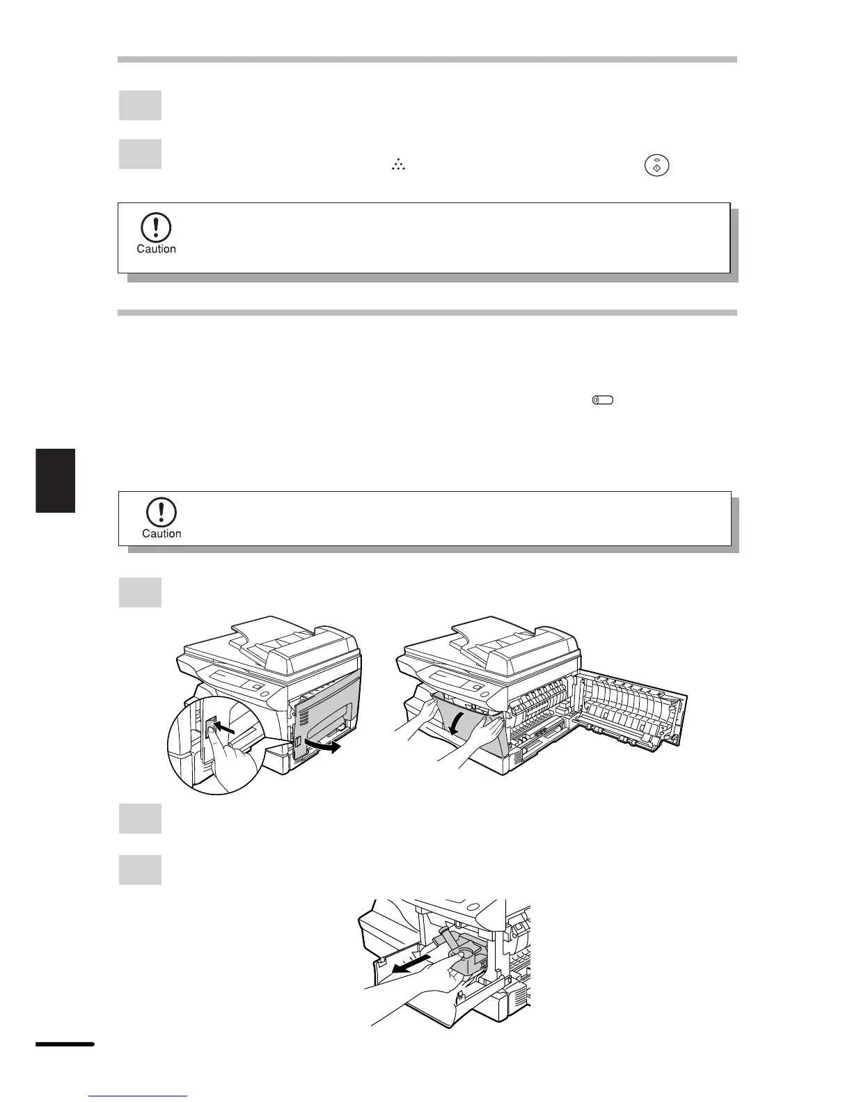 the side cover open button. The indicator will go out and the ready ( ) indicator
