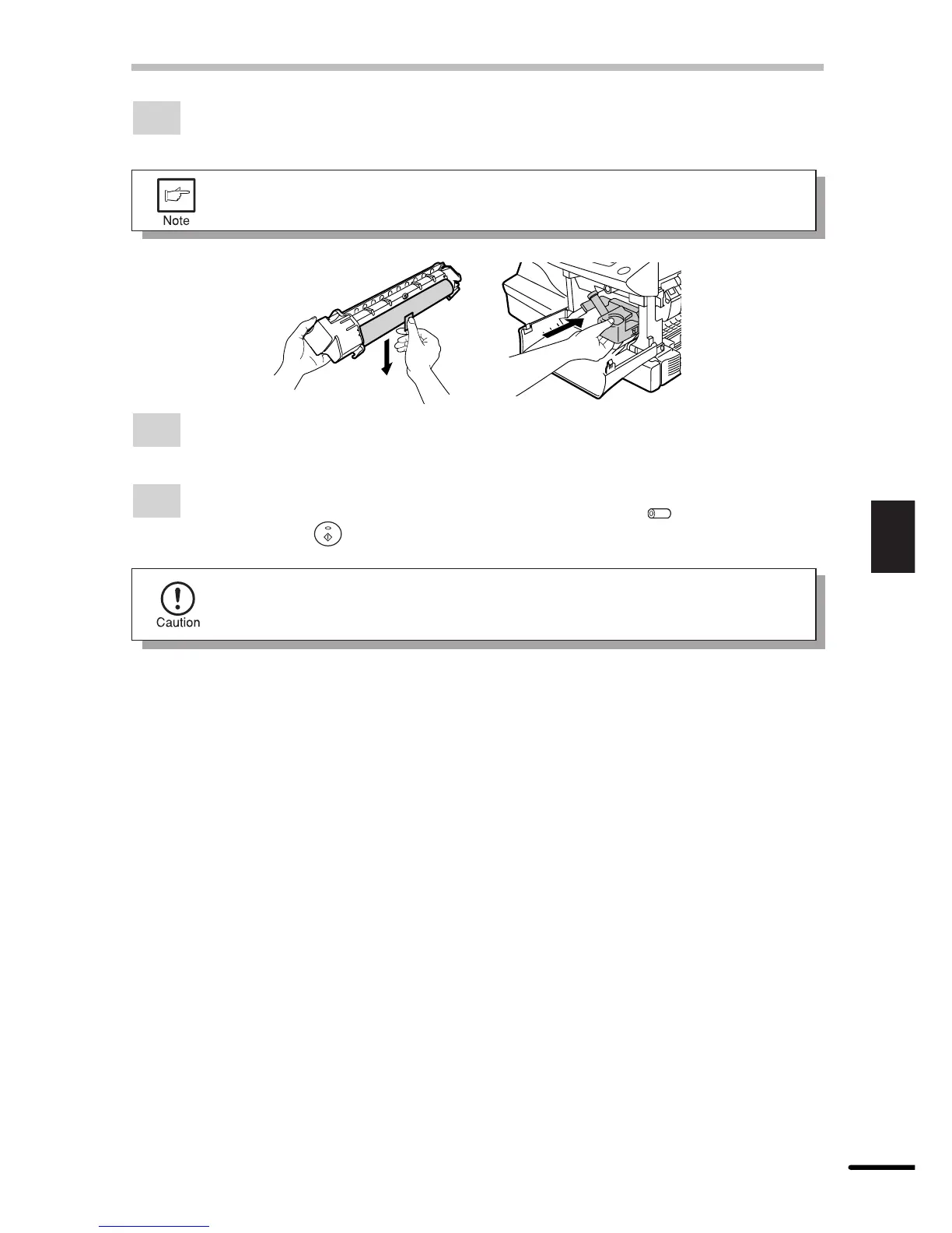Do not touch the surface of the drum (green portion) of the cartridge. Doing so
