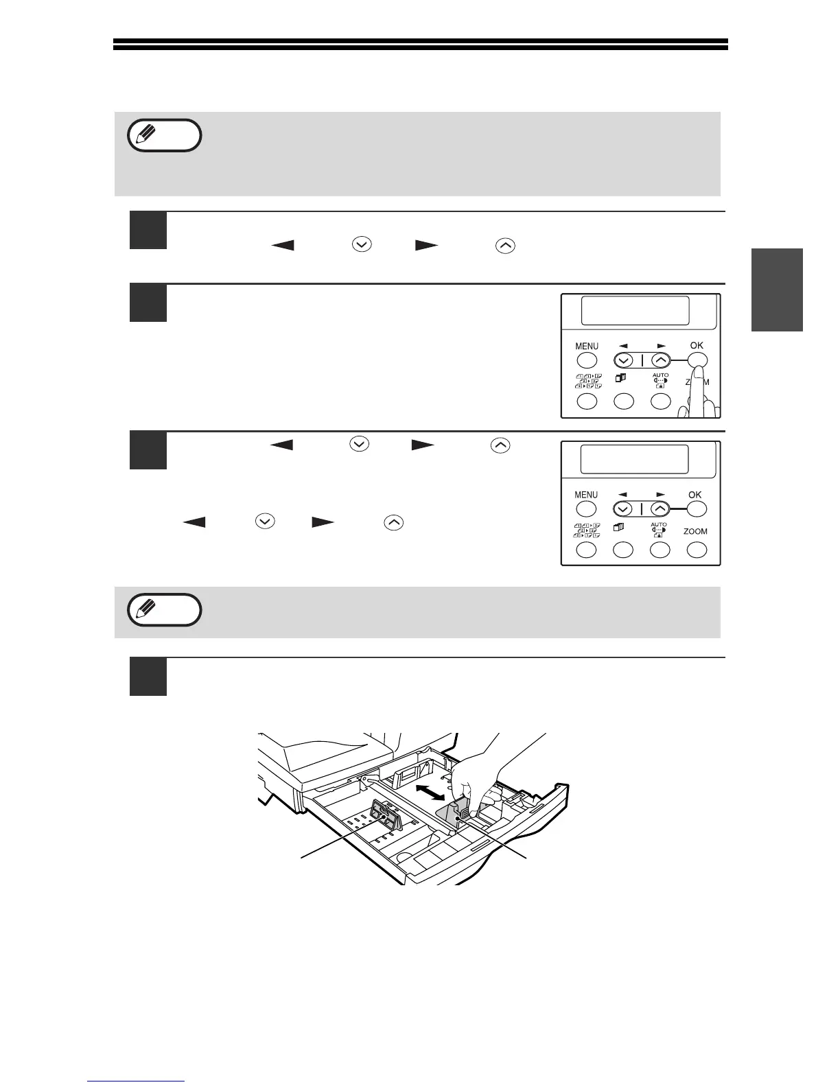 • During printing (even in copy mode), the paper size setting cannot be