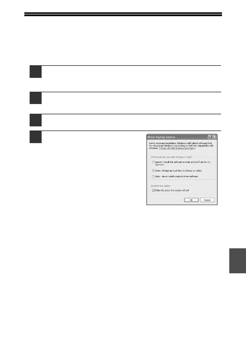 Click the "Hardware" tab and then click the "Driver Signing"