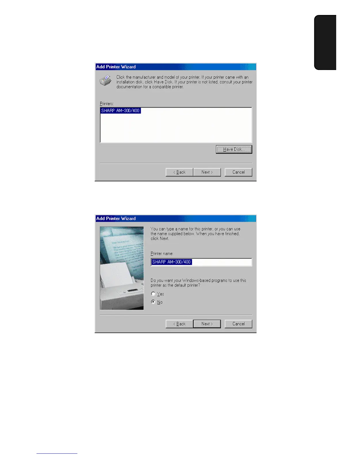 10. Select Yes if you would like to use the AM-400 as the default printer and click