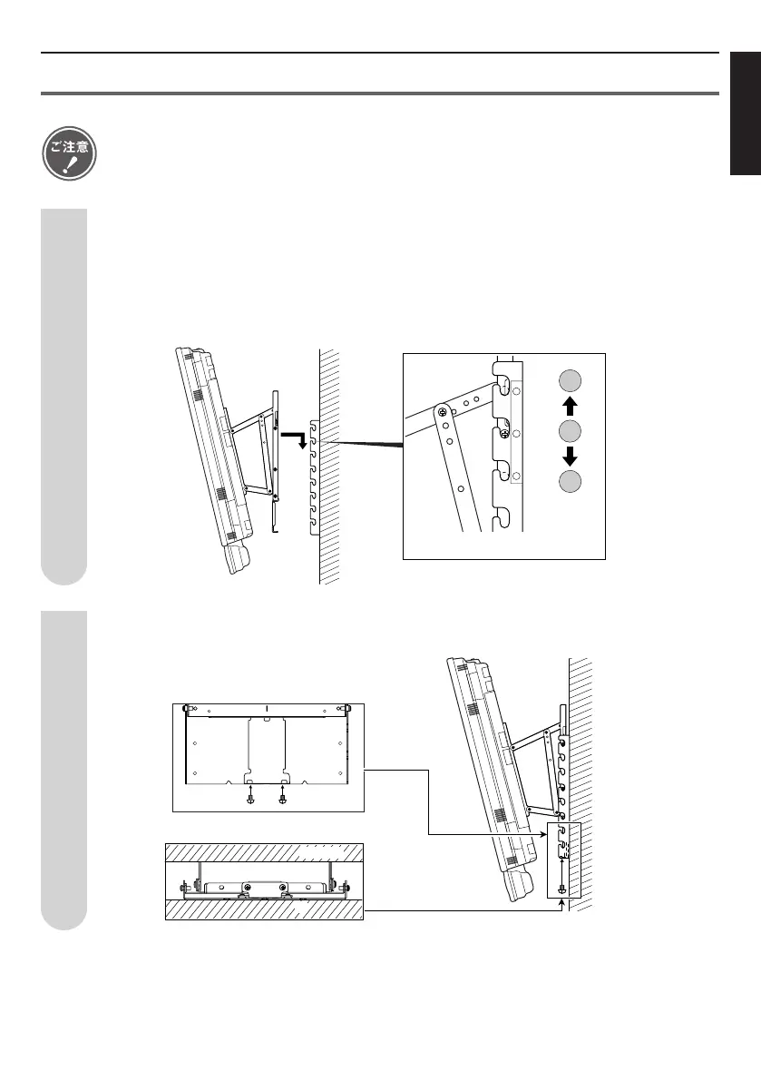 ・壁用金具への取り付けは必ず 2 人以上で行ってください。
