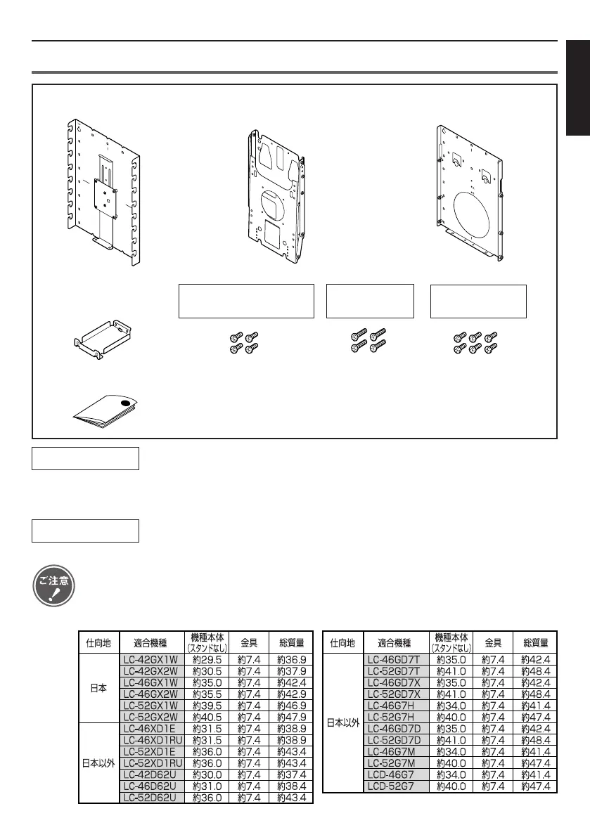 壁掛け金具固定用及び本体金具