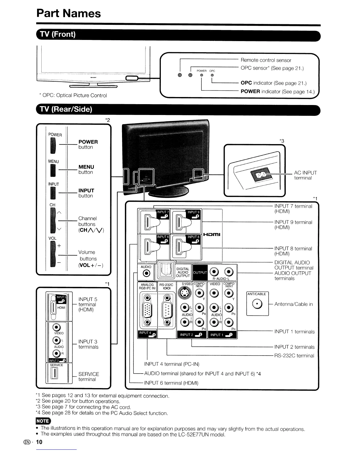 • The examples used throughout this manual are based on the LC-52E77UN model.