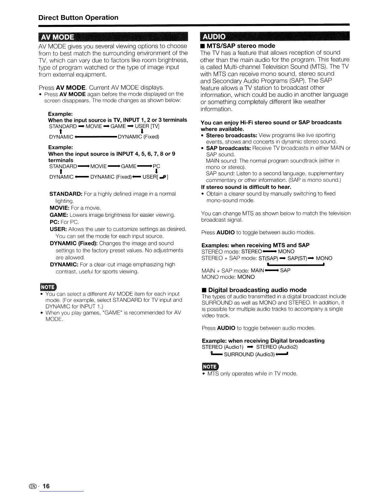 with MTS can receive mono sound, stereo sound