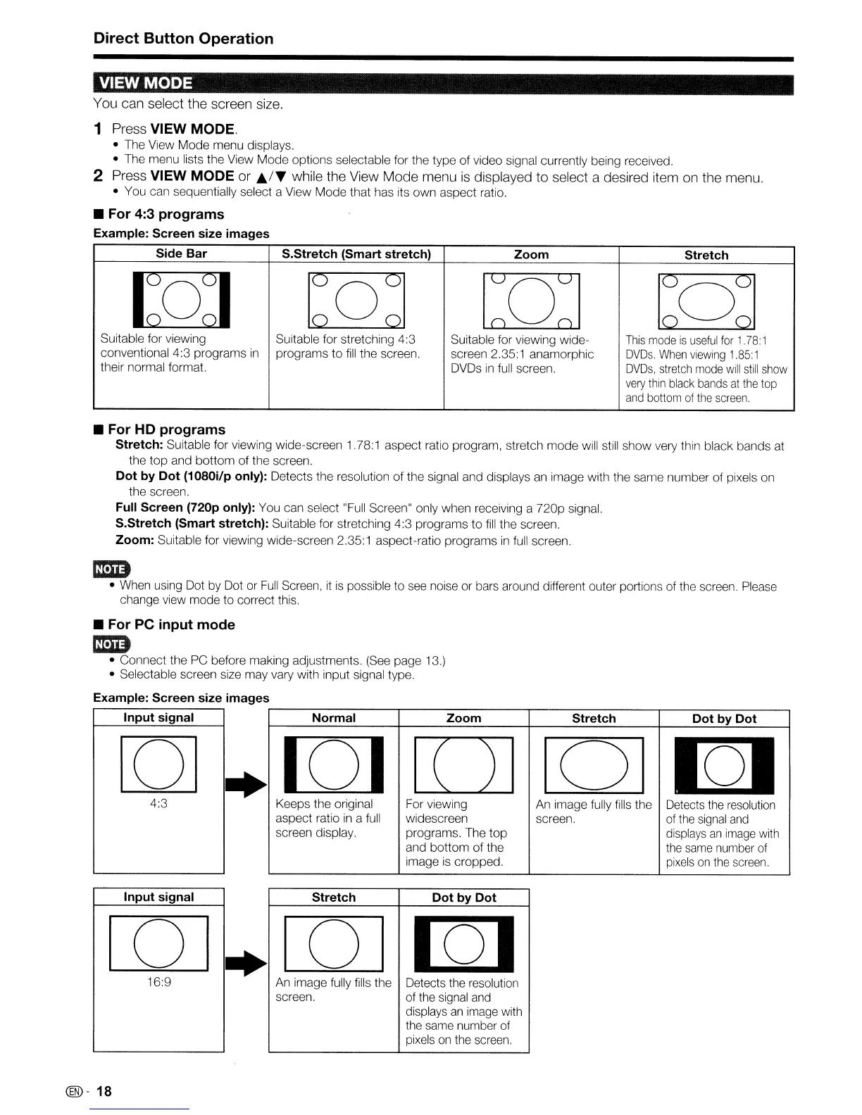 S.Stretch (Smart stretch): Suitable for stretching 4:3 programs