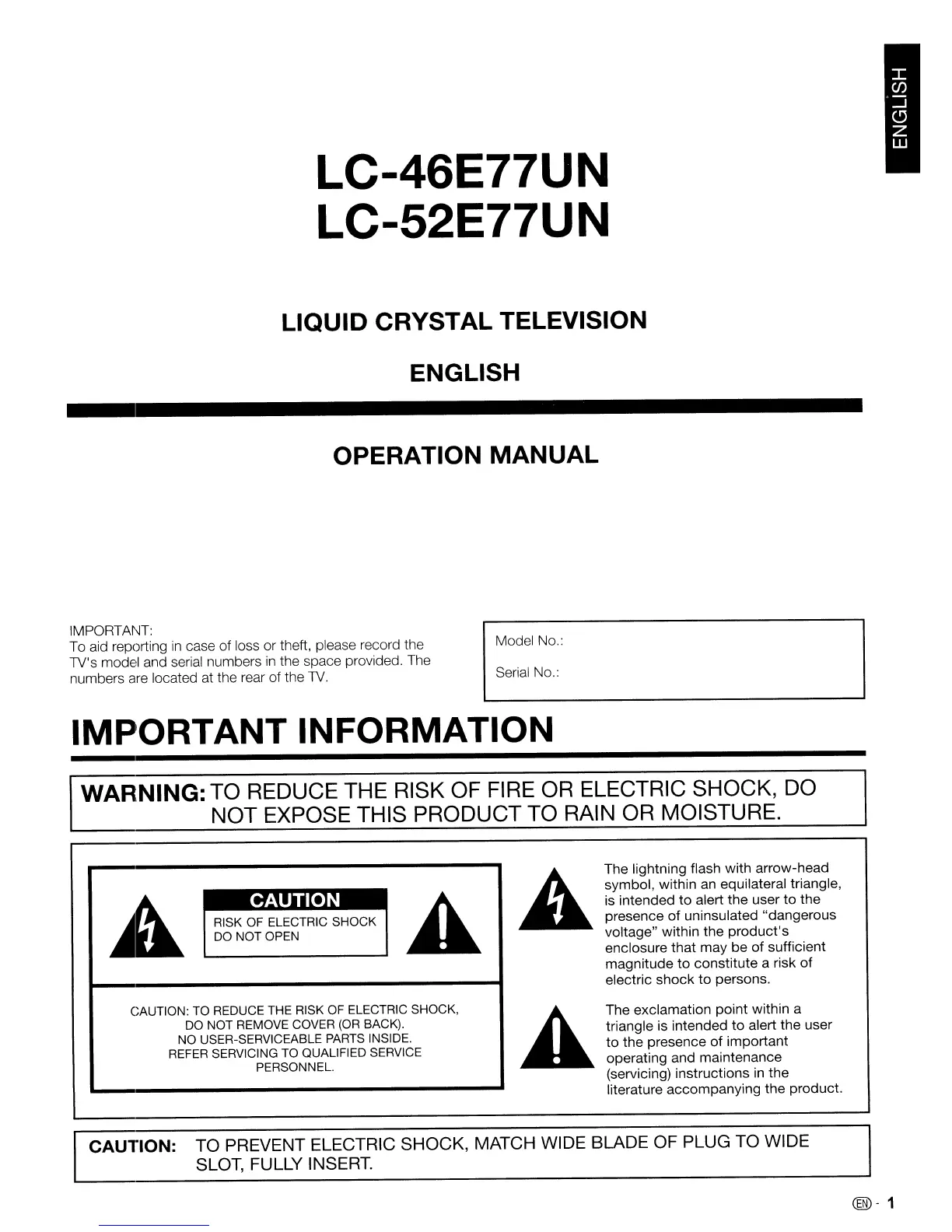 WARNING: TO REDUCE THE RISK OF FIRE OR ELECTRIC SHOCK, DO