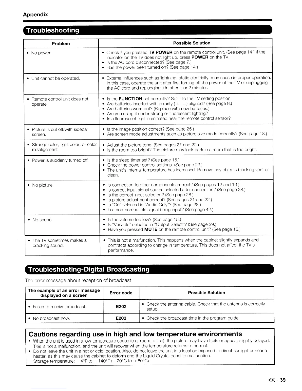 Troubleshooting-Digital Broadcasting