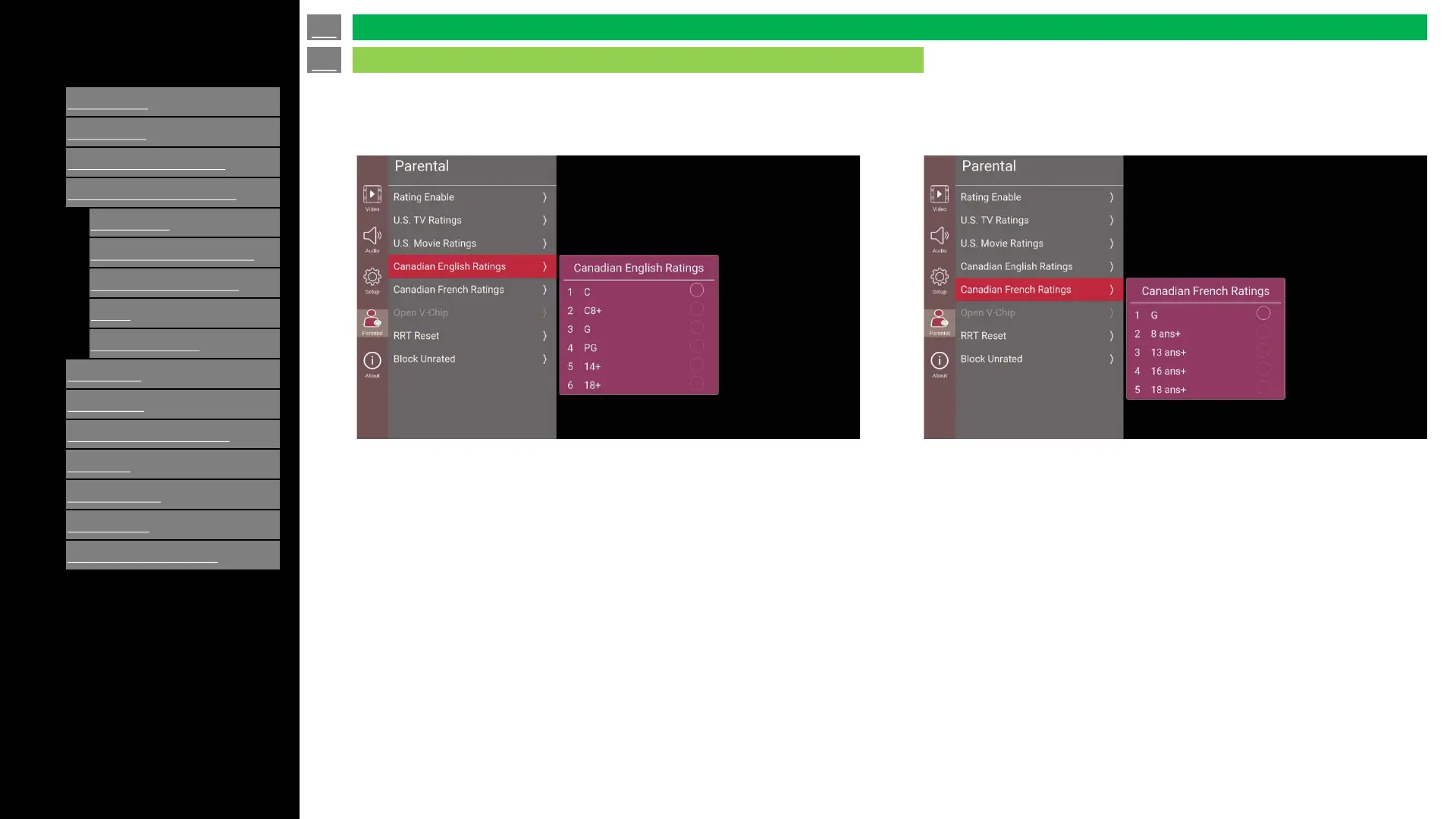 Press “Down” key -> Canadian English Ratings