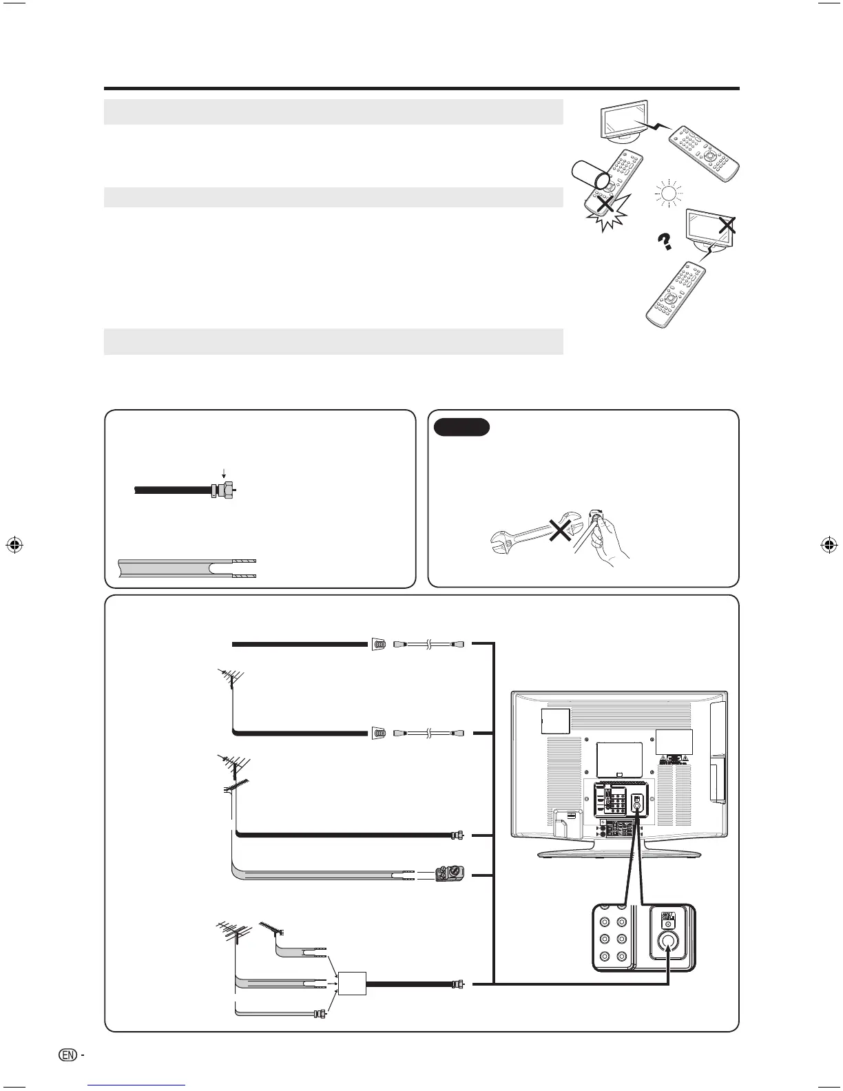 F-type connector, plug it into the antenna terminal at the rear of the TV set.