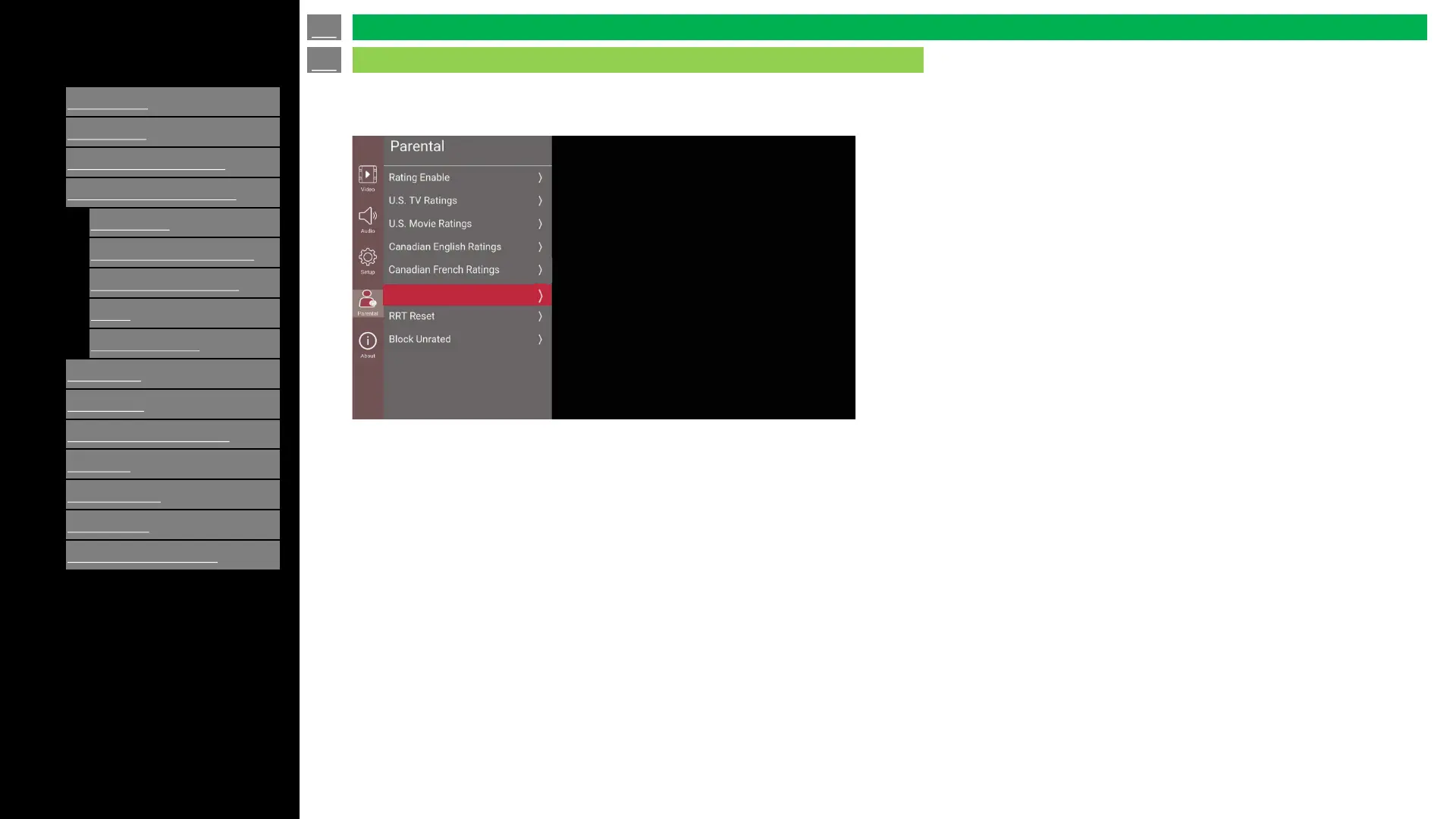 Press “Down” key -> Open V Chip -> Press Enter” key and select one item as show below