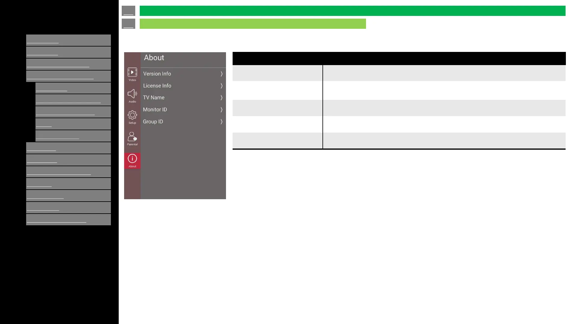 Monitor ID Show the TV Name (a custom name for the display). It can be edited.
