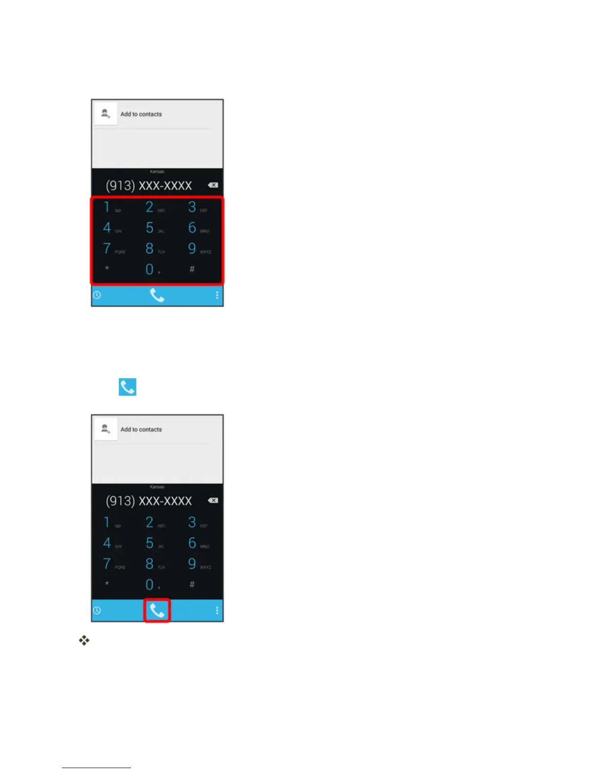 2. Touchthenumberkeysonthedialpadtoenterthephonenumber.