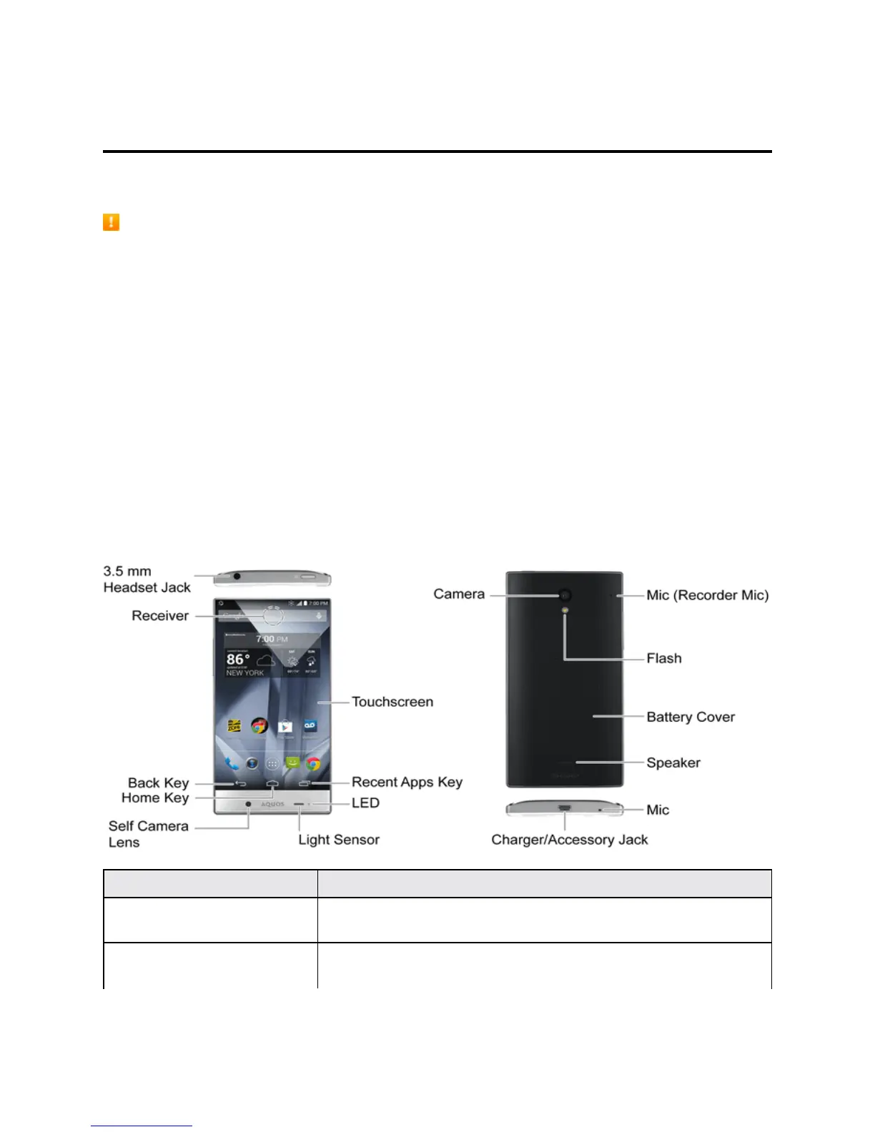 Thesetopicsillustrateyourphone’sprimarypartsandkeyfunctions.