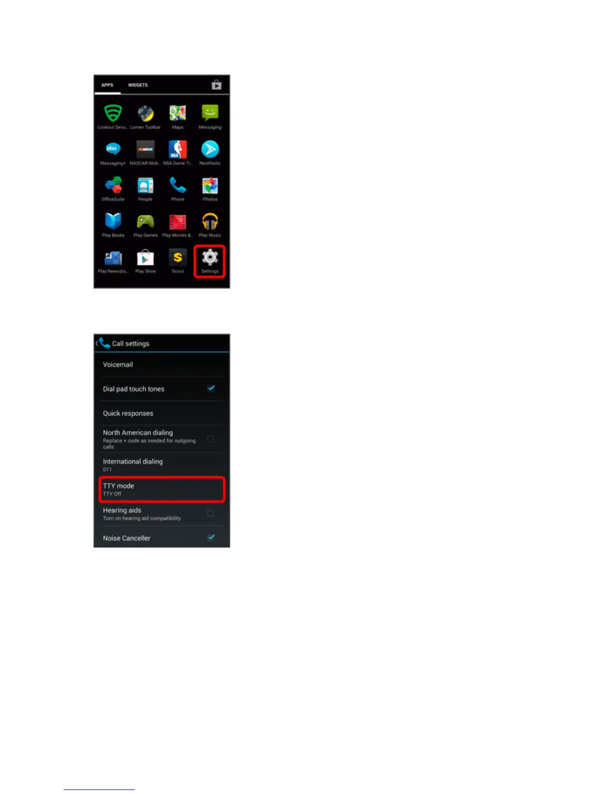 2. TouchCall>TTY mode.