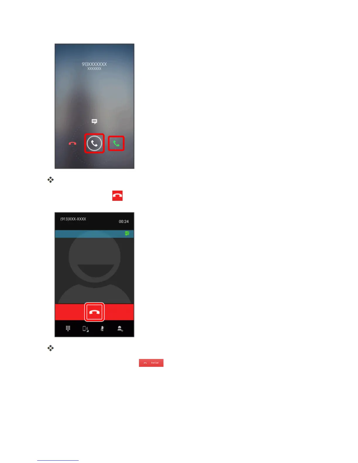 Ifthescreenislocked,drag downtoendthecall.