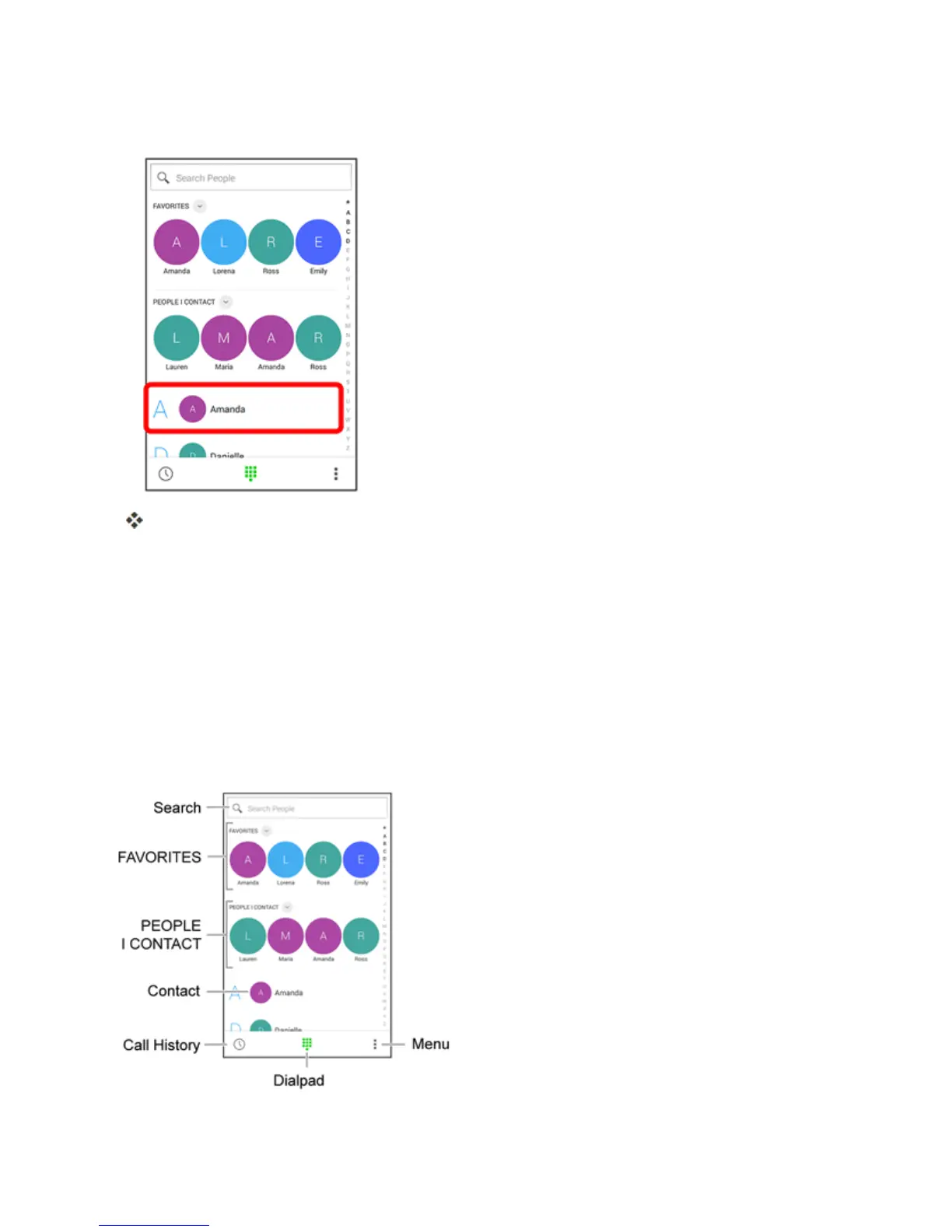 ThefollowingillustrationshowsyourSmartContactsscreenlayoutanddescribesthevarious