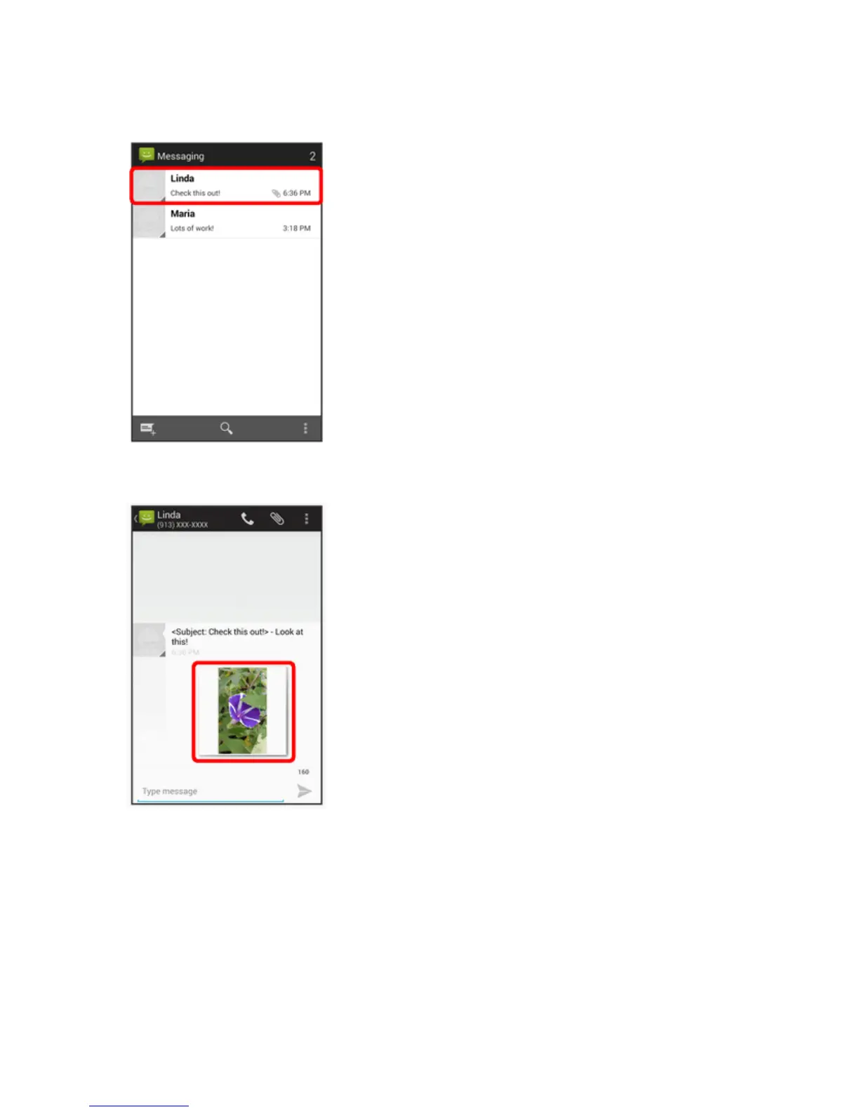 2. OntheMessagingscreen,touchamultimediamessageorconversationtoopenit.