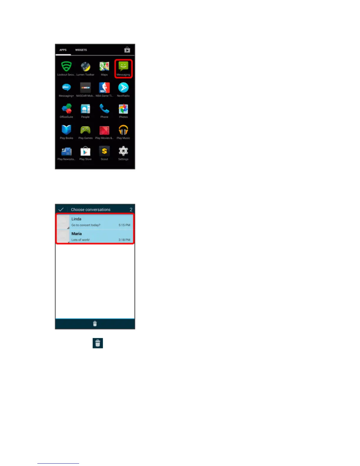 TouchDelete andthentouchDeletetoconfirm.Anylockedmessageswillnotbedeleted