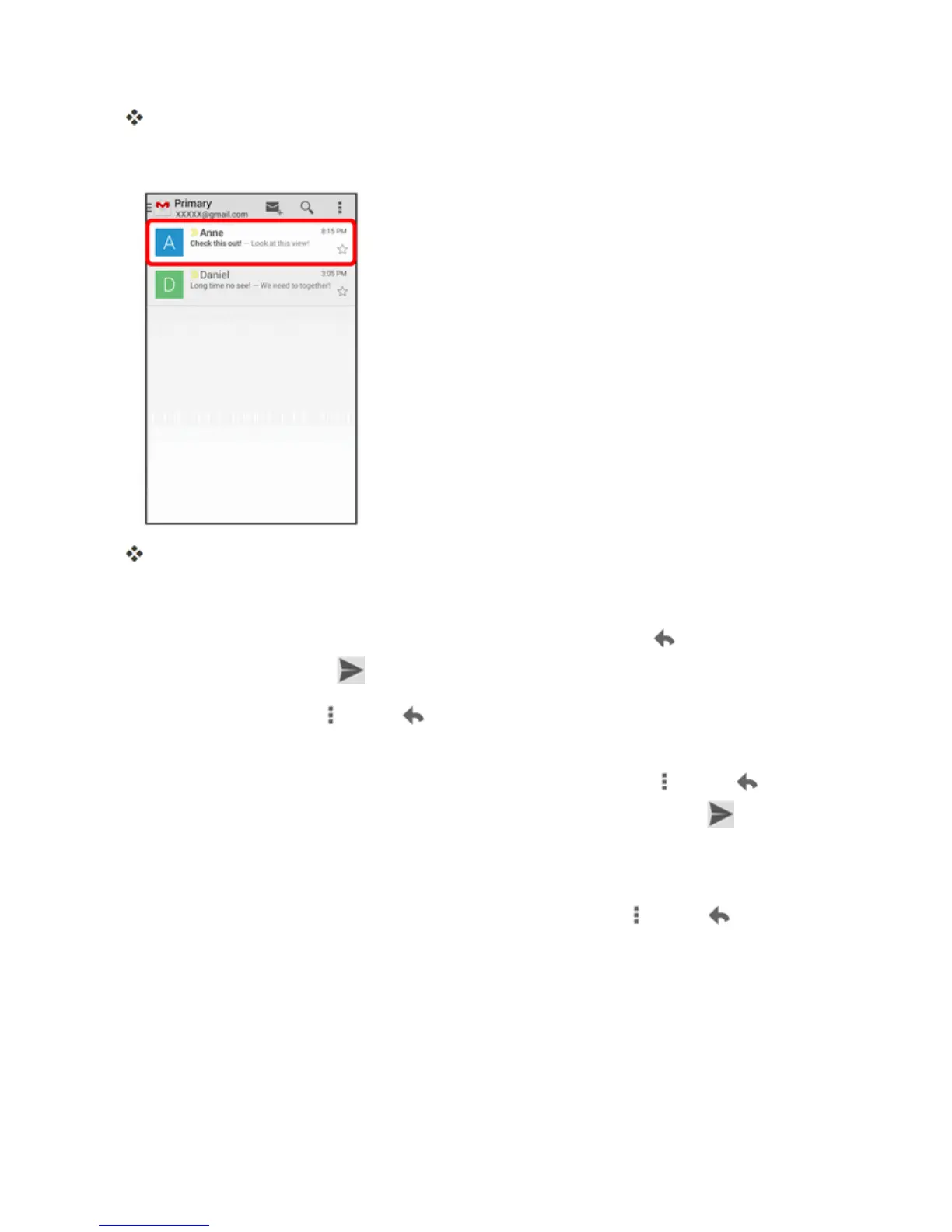 Replying to Gmail Messages:WiththeGmailmessageopen,touch ,composeyourreply