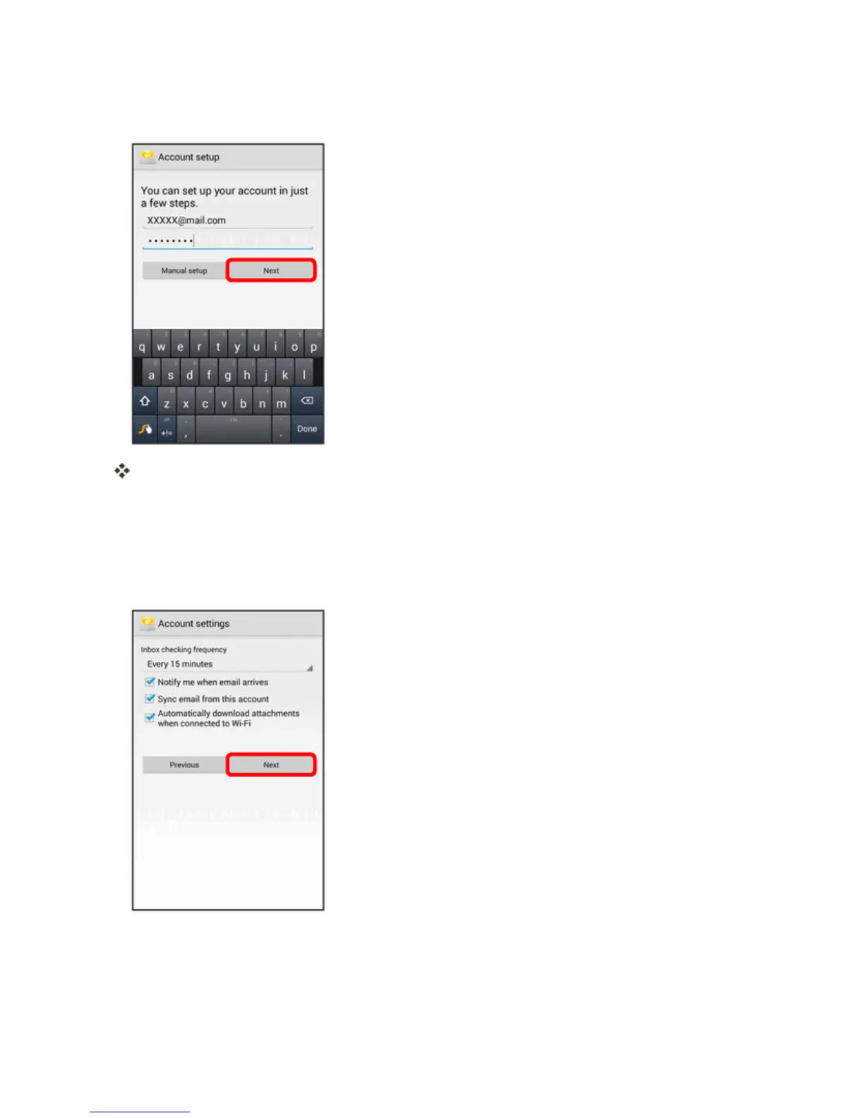 TouchingNextpromptsyourphonetoattempta“regular”emailsetupandtesttheincoming