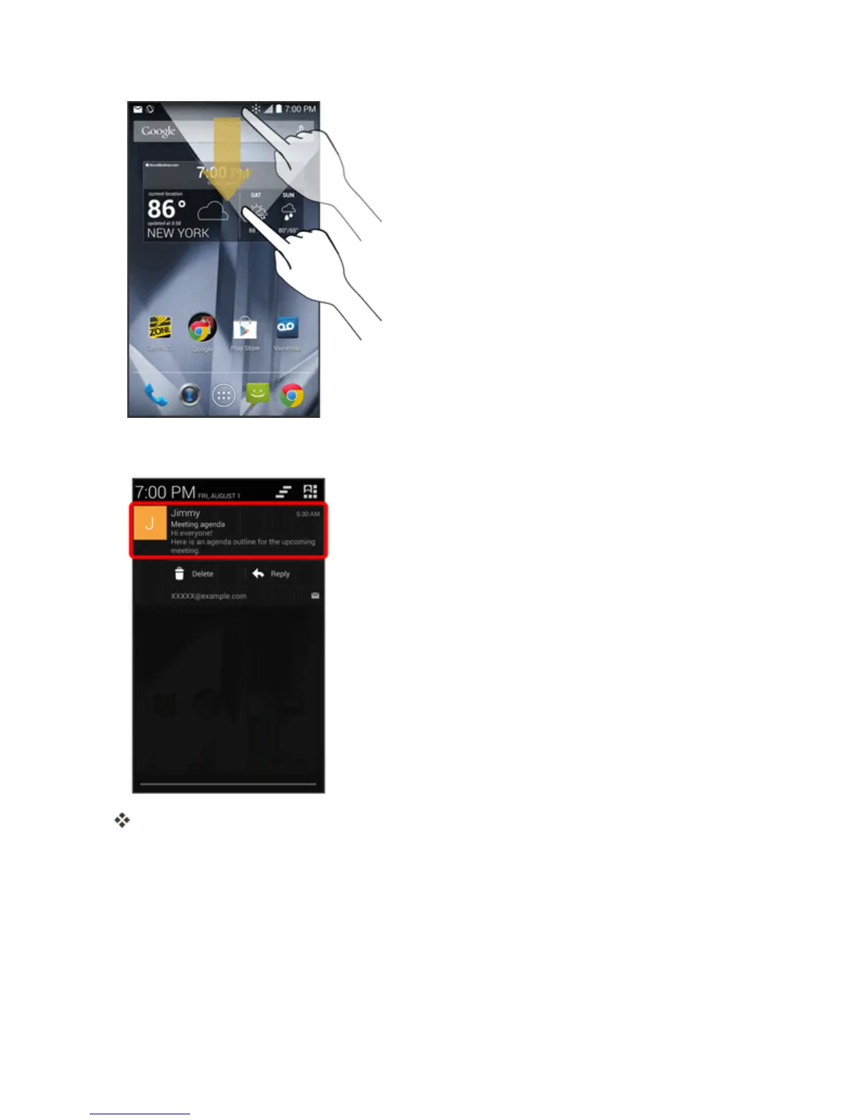 l Ifyouhavetwoormorenewemailmessages,touchingthenotificationopenstheemail